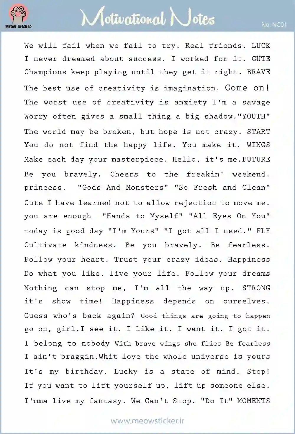 برچسب جملات انگیزشی انگلیسی میواستیکر- کد NC01
