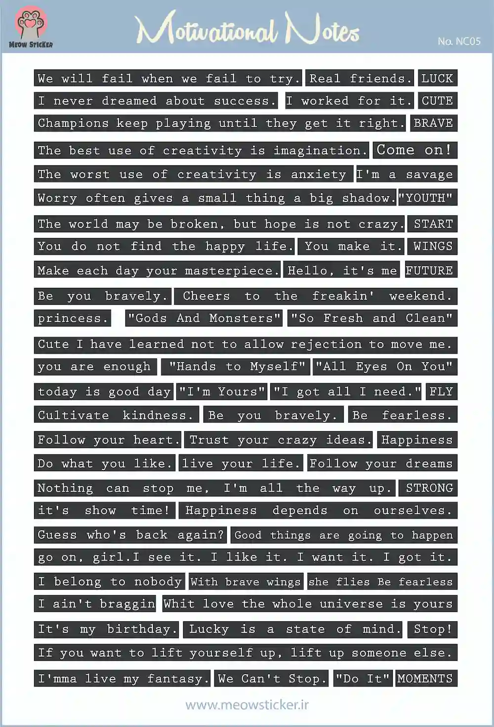 برچسب جملات انگیزشی انگلیسی میواستیکر- کد NC05