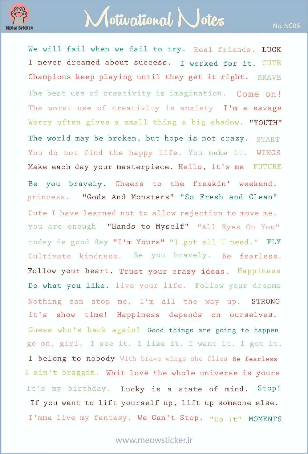برچسب جملات انگیزشی انگلیسی میواستیکر- کد NC06