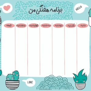 این برنامه هفتگی رنگی و جذاب کمک می‌کند کارها و تکالیف به‌صورت منظم و با انگیزه انجام شوند.
